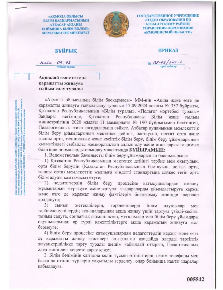Ақшалай және өзге қаражатты жинауға тыйым салуға туралы бұйрық