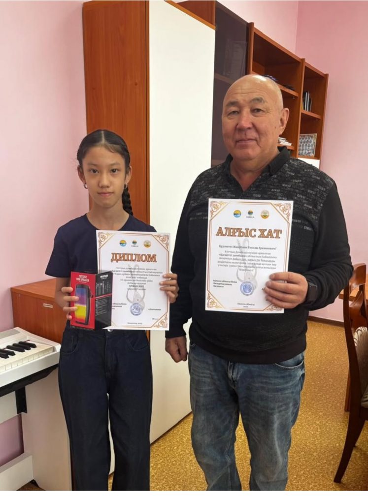 Облыстық “ Қасиетті домбыра” байқауында “ Үздік күйші” номинациясы бойынша 3 орын жеңімпазы Ержан Зере, оқытушысы Жакубаев Т.З. Ақмола облысы білім басқармасының мақтау қағазымен және естелік сыйлықпен марапатталды. Альпейсов Е.С. , Амралинов К.Ж. және оқушылары байқауға белсенді қатысқандары үшін сертификатпен марапатталды.