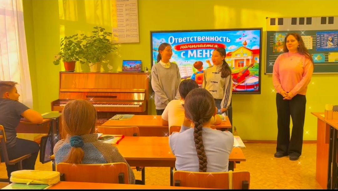 Біздің балалар музыка мектебінде "Адал Азамат" бағдарламасы аясында "Жауапкершілік менен басталады" тақырыбында сынып сағаты өтті. Бұл балалармен жауапкершілік пен өзін — өзі тәрбиелеу туралы жанды және жылы әңгіме болды. Бұл тек оқуда ғана емес, музыкада да, өмірде де маңызды қасиеттер. Балалар белсенді қатысты: сұрақтарға жауап берді, ойлады, өз ойларымен бөлісті, өмірден мысалдар келтірді және өздері сұрақтар қойды. Тақырып оларға жақын және түсінікті болды. Мұндай салқын сағаттар балаларға өз әрекеттері туралы ойлануға және зейінге тағы бір қадам жасауға көмектеседі. Өйткені, жауапкершілік шынымен әрқайсымыздан басталады! Жауаптылар: Самохвалова Н.Ф. және Пролубникова К. В.